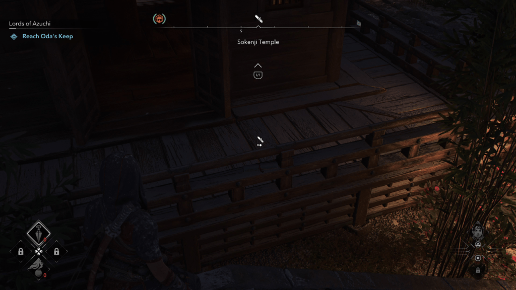Para maximizar la eficiencia, use la capacidad de enfoque de NaoE manteniendo manteniendo el LT, L2 o el botón designado para resaltar los objetivos con puntos blancos o azules, guiándole directamente a donde necesita orar o buscar páginas. El movimiento más rápido de Naoe y el acceso a áreas altas con su gancho de agarre hacen que la recolección de páginas perdidas sea fácil y rápida.