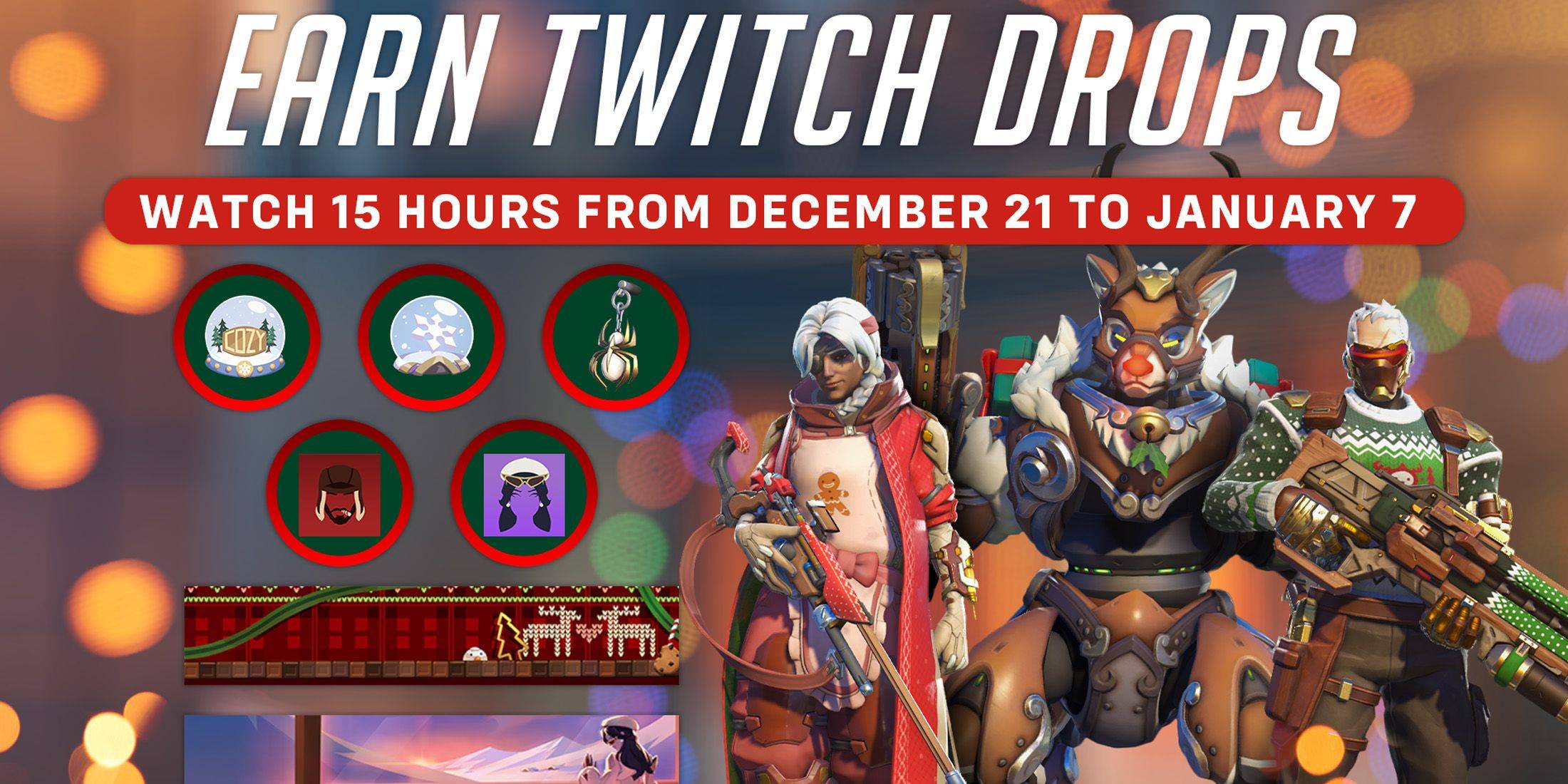 enOverwatch 2, Winter Wonderland 2024 Twitch Drops estuvo disponible a partir del 21 de diciembre de 2024 , hasta 7 de enero de 2025 . Ver elegible Overwatch 2 transmita en Twitch para obtener recompensas después de acumular un tiempo de reloj específico. Para aquellos que prefieren no mirar activamente, pueden silenciar la transmisión o jugarla en una pestaña/ventana de fondo, o incluso en un dispositivo móvil.
