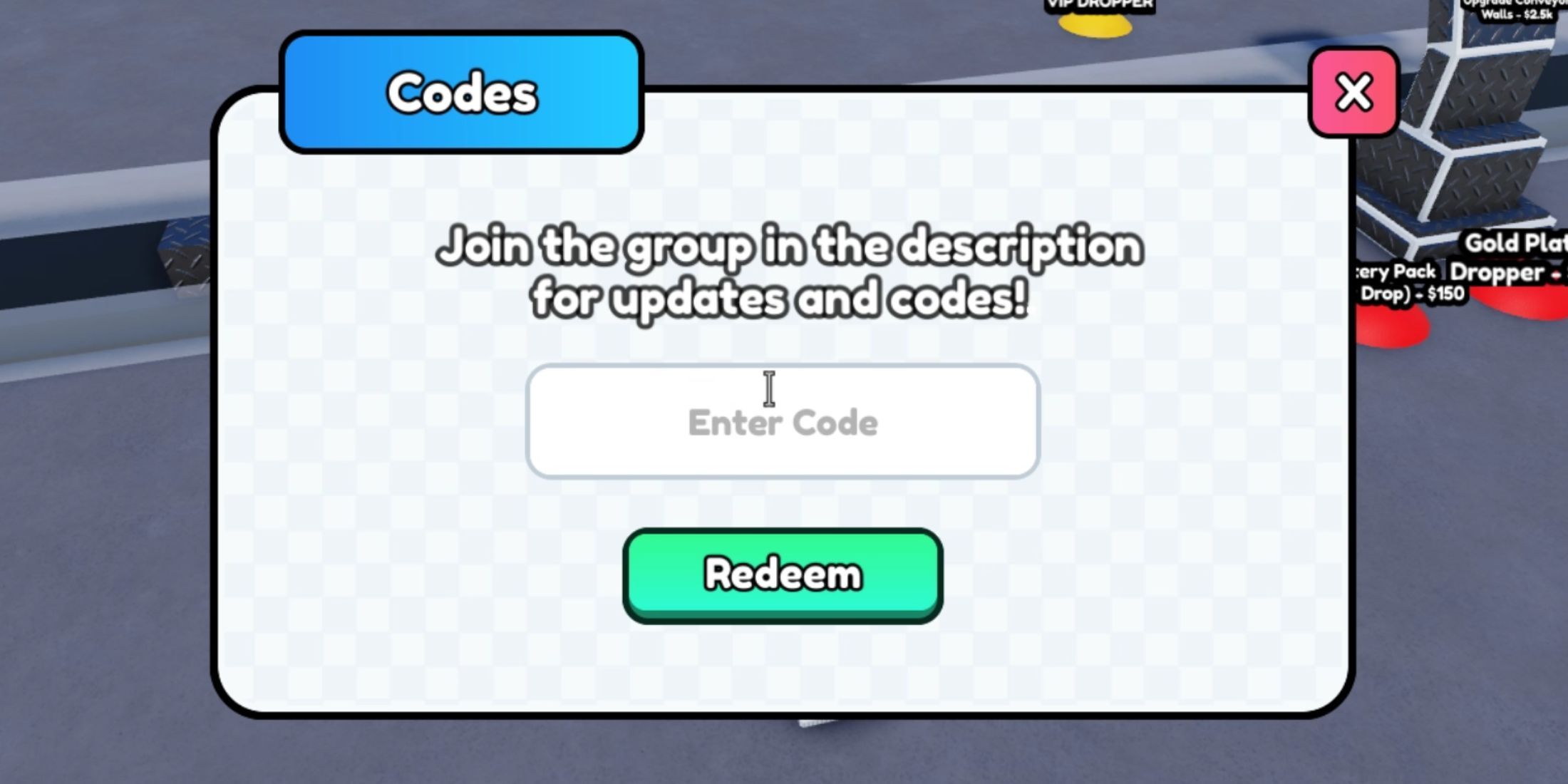Redeeming codes in Dropper Incremental Tycoon is as straightforward as in most Roblox tycoon games. If you're new to the genre, here's how to claim your rewards: